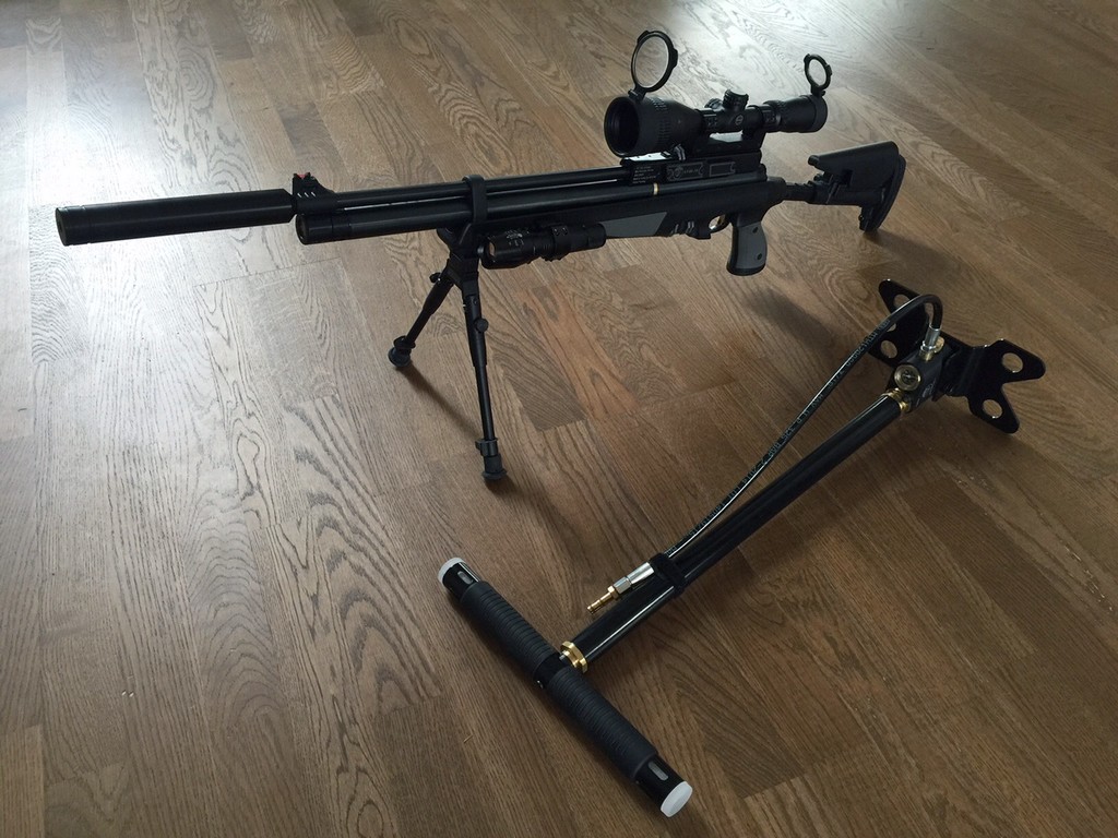 Esimesed emotsioonid on seni head. Summuti peab sellel olema sest siis on asi mõnusalt vaikne. Pumpamise suhtes olin kõhkleval seisukohal, aga mõned korrad pumbaga askeldamist näitab, et täiteballoonist lähitulevikus ei unista. Ca. 30 lasku 200bar`i juures annab välja, mis on minu jaoks ok. Kylge läks veel bipod ja lamp.