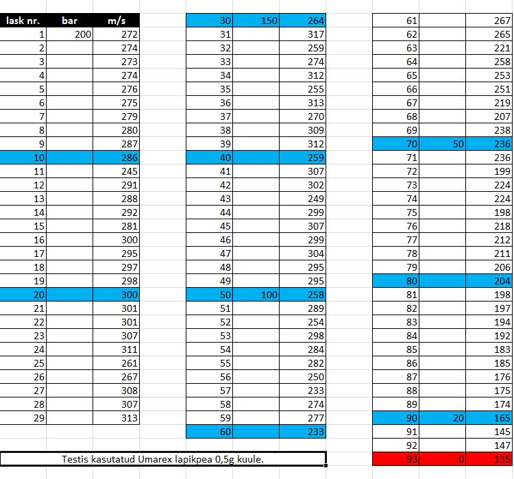 Kasutasin vanu Umarexi kuule sest ei tahtnud JSB Exacte niisama 90tk magama panna, kuigi testi tulemused olnuks arvatavasti stabiilsemad.